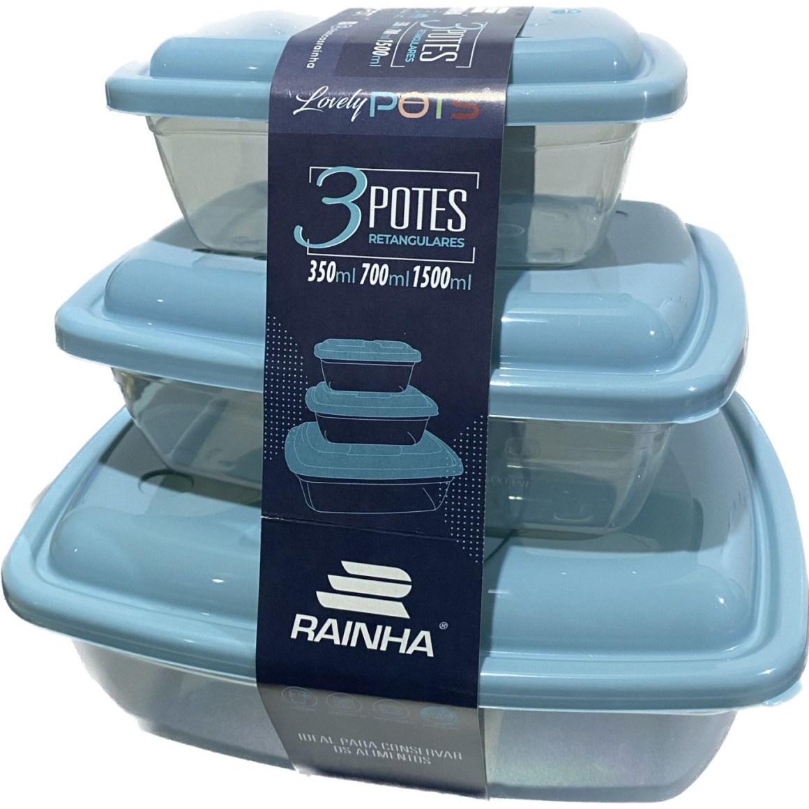 2. kit 3 potes rainha retangular 350ml/700ml/1500ml